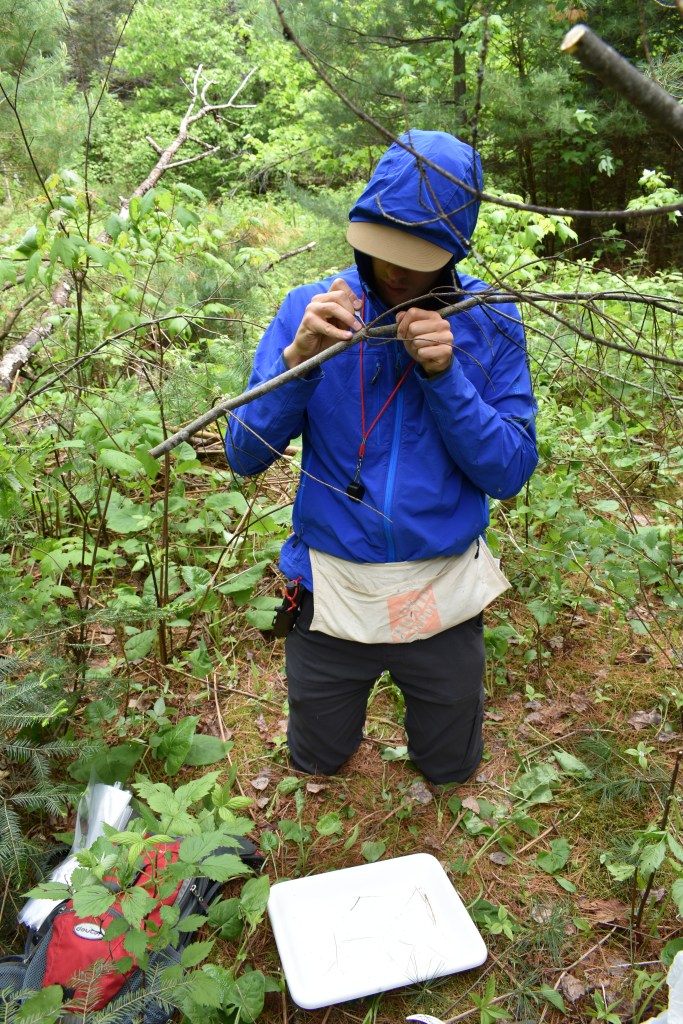 Thomas meticulously removing scale insects from a branch in Wisconsin, USA. Not pictured very well are the hundreds of swarming mosquitos. =/
