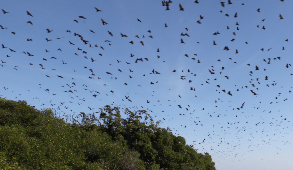 During the course of fieldwork for this study, members of our team located bat species that hadn’t been seen alive in over two decades. We also found that colony sizes are shrinking throughout the IAA; a colony’s crepuscular emergence no longer blankets the sky with black, leathery wings. We observed that species throughout Asia are hunted at unsustainable levels for human consumption, which creates a conservation crisis for bats and a public health hazard for humans, who could be exposed to potentially lethal pathogens. This has motivated us to train multiple grass-roots organizations and local scientists in standardized population monitoring and outreach methods, along with push for localized hunting bans or regulations to prevent further decline. Expansive biogeographic studies like this may not be possible in the future if the current rate of population extirpation continues. Flying foxes and other fruit bats are charismatic but little known. They are perhaps best studied in Australia where roosts are near urban areas, but only 5 of the 65 known species are found there. A majority of species are endemic to single islands or island groups, and these species are understudied, despite their importance for forest regeneration on isolated, oceanic islands. Future studies will examine the environmental impact of flying foxes on terrestrial and marine ecosystems, as many species roost in large aggregates in liminal areas, such as mangroves, that abut vulnerable ecosystems such as coral reefs.