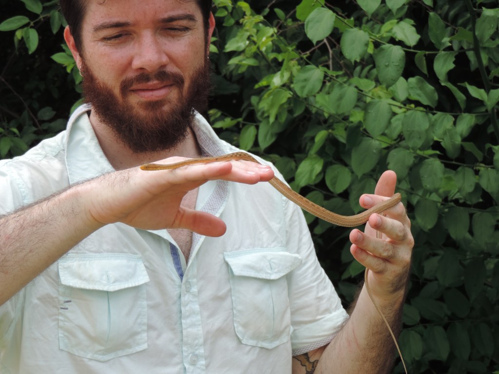 Felipe Camurugi in the field, collecting herps. Photo credit: Sandro Paulino.