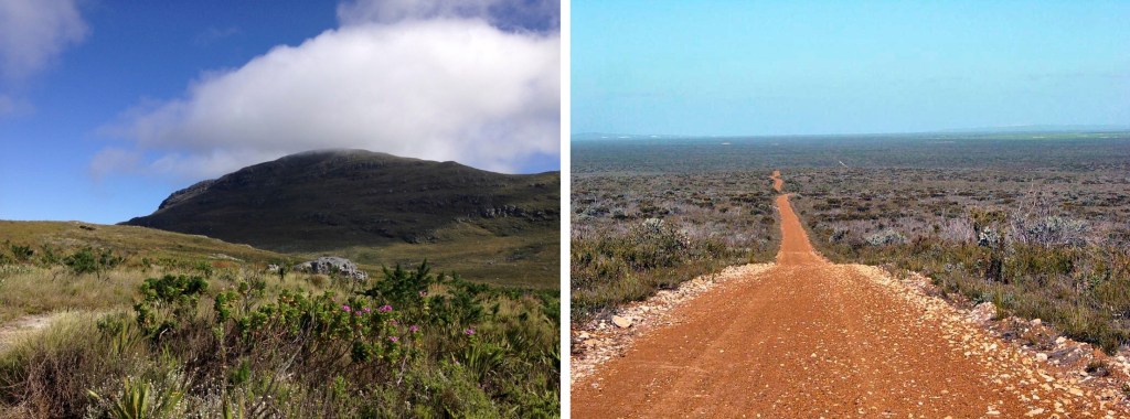 The differences in topography between the GCFR (left, mountainous) and SWAFR (right, flat as a pancake) are really striking! Pictured: Table Mountain National Park, South Africa (left) and Fitzgerald River National Park, Western Australia (CC BY-SA 3.0 Yewenyi).