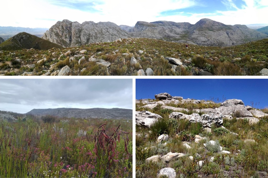 This is what makes me oh-so-happy to work in the fynbos around Cape Town. Clockwise from the top are the views from atop Observation Peak, in the crevices of the Silvermine region of Table Mountain National Park, and on the slopes of the Kogelberg.