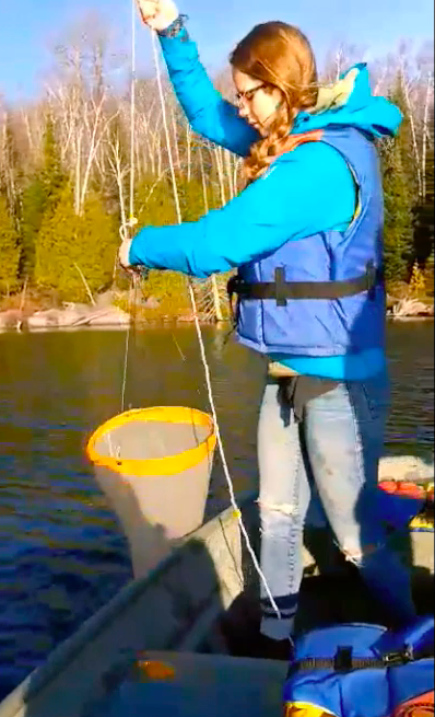 Cindy Paquette collecting zooplankton in Lac Croche (Station de Biologie des Laurentides, University of Montreal), QC – Canada.