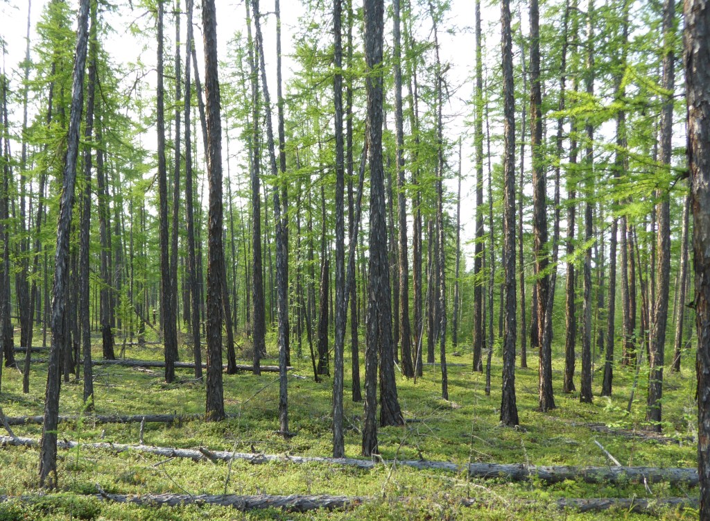 A forest stand of Larix gmelinii growing on continuous permafrost. It is the northernmost and most cold-resistant tree species on the planet (Eastern Siberia, Russia).
