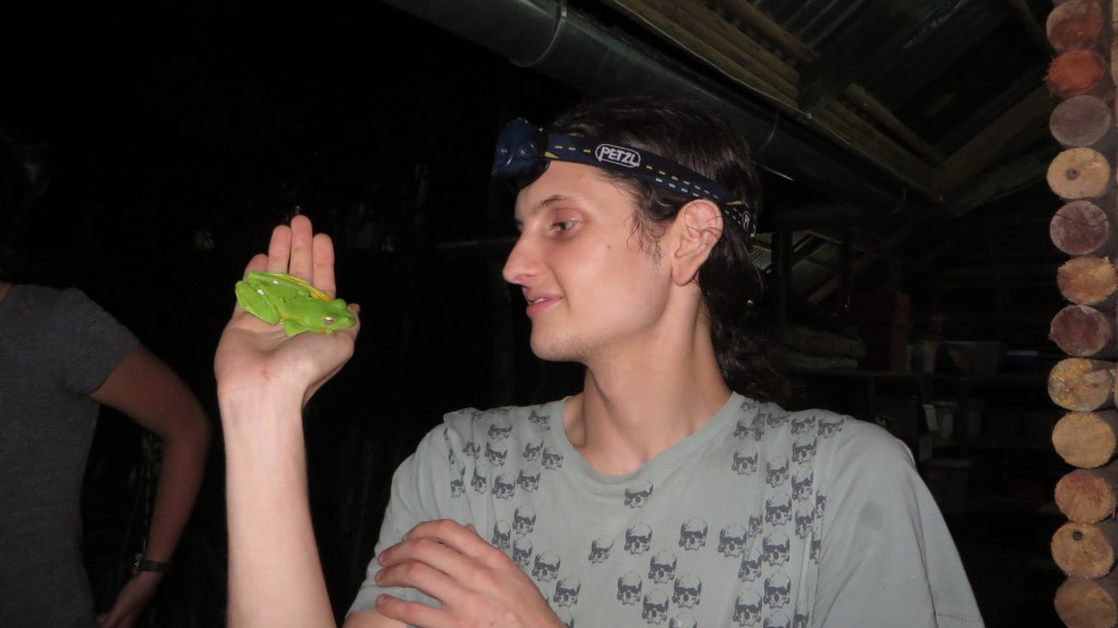 Rowan with Wallace’s Flying Frog (Rhacophorus nigropalmatus).