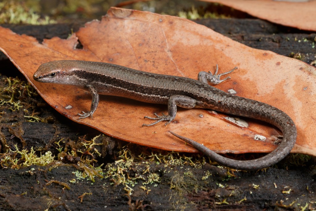 The Garden-skink (Lampropholis guichenoti) foraging on the leaf litter. Photo by Jules Farquhar.