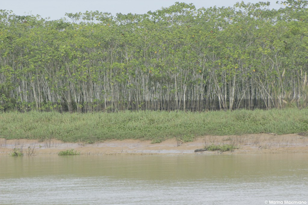 Flooded forest in Juruá River; the dark line in the trees shows the inundation height (Credits: Marina Maximiano).
