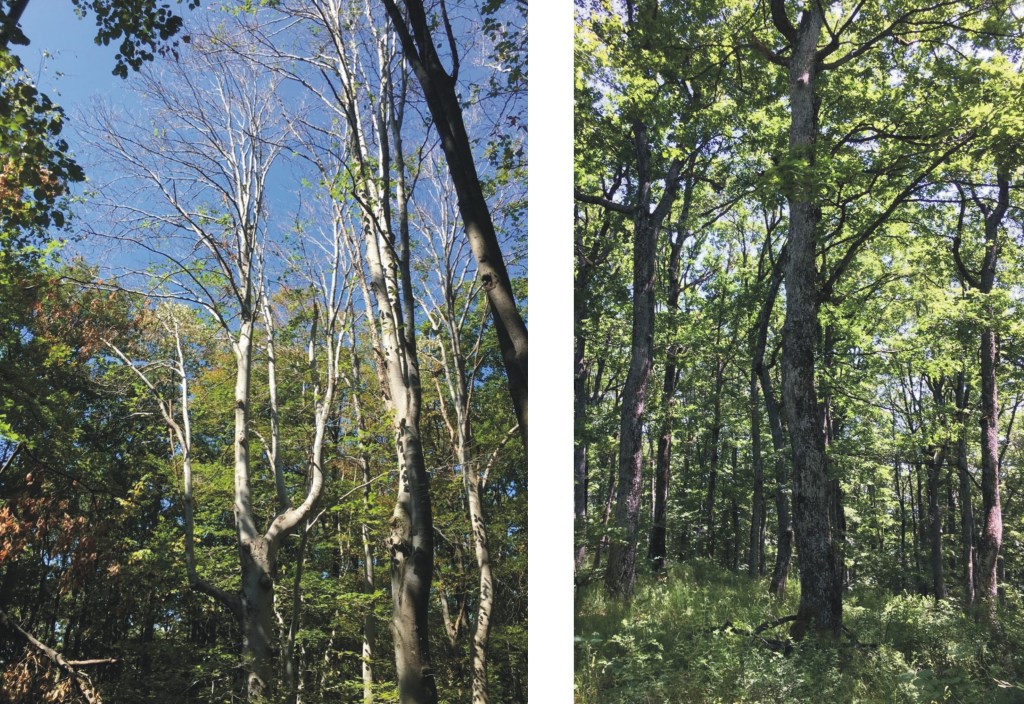 View into beech (left) and oak (right) forests in the study area in Western Romania (Photo Credits: Jan Kasper).