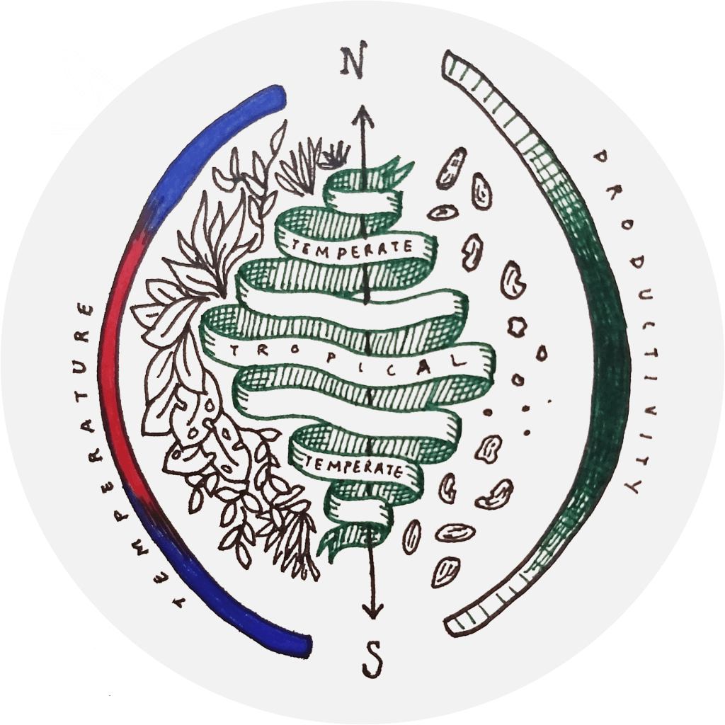 An illustration of the biotic interactions hypothesis. Tropical latitudes are usually warmer, more biodiverse, and have higher productivity. In these more climatically favourable environments, species interactions are expected to be stronger, in this case: higher rates of daily seed predation.
