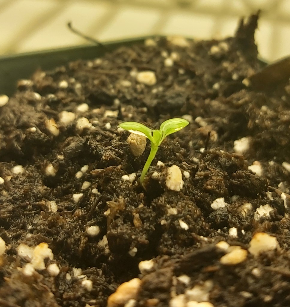 An emerging white clover (Trifolium repens) in a growth chamber.