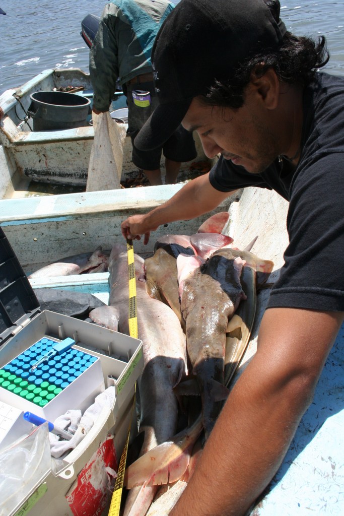 Jonathan sampling elasmobranch tissue from artisanal fisheries. Jonathan visited over 30 artisanal fishery camps around the Gulf of California and the Baja California Peninsula during his PhD fieldwork.